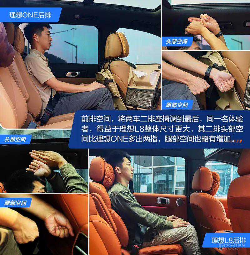 首先从尺寸对比看,789三兄弟都要比理想ONE大一些,无论是长宽高还是尺寸。而理想L8与L7,除了车长车高,其余数据一模一样。同时也不难看出,三兄弟在车内空间方面,应该也会比理想ONE有所提示。既然L8是继任者,我们也将它与理想ONE单独对比一下两者的车内驾乘空间如何。
