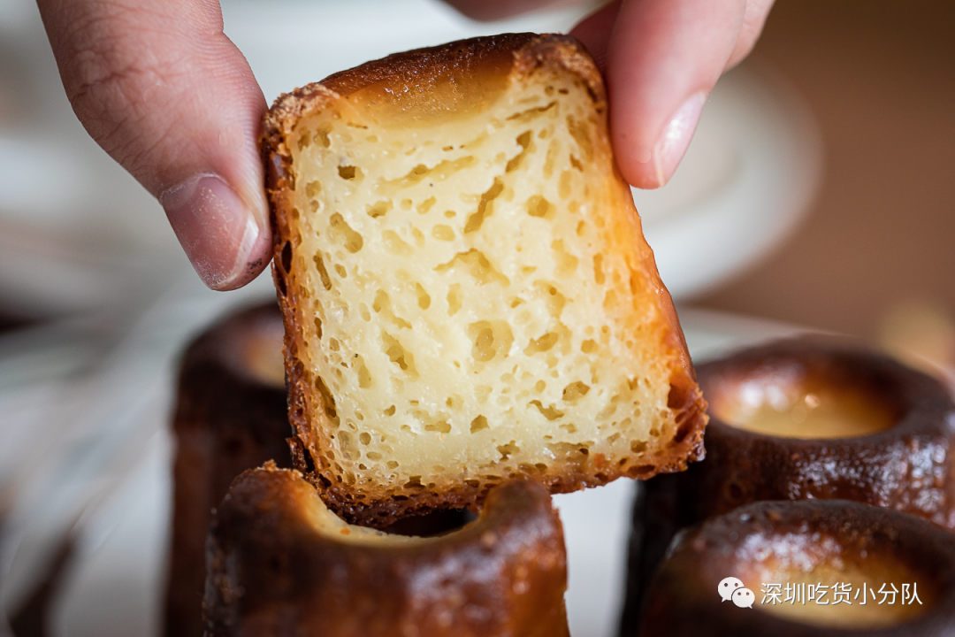 不过招牌可露丽还在,说起深圳的可露丽,他们家应该是最早一批开始卖的,这是一款修女们制作出的下午茶小点心。外层烘烤成焦黑酥脆,内里呈蜂窝状。湿软绵韧,吃着有焦糖的甜味和酒的香气。