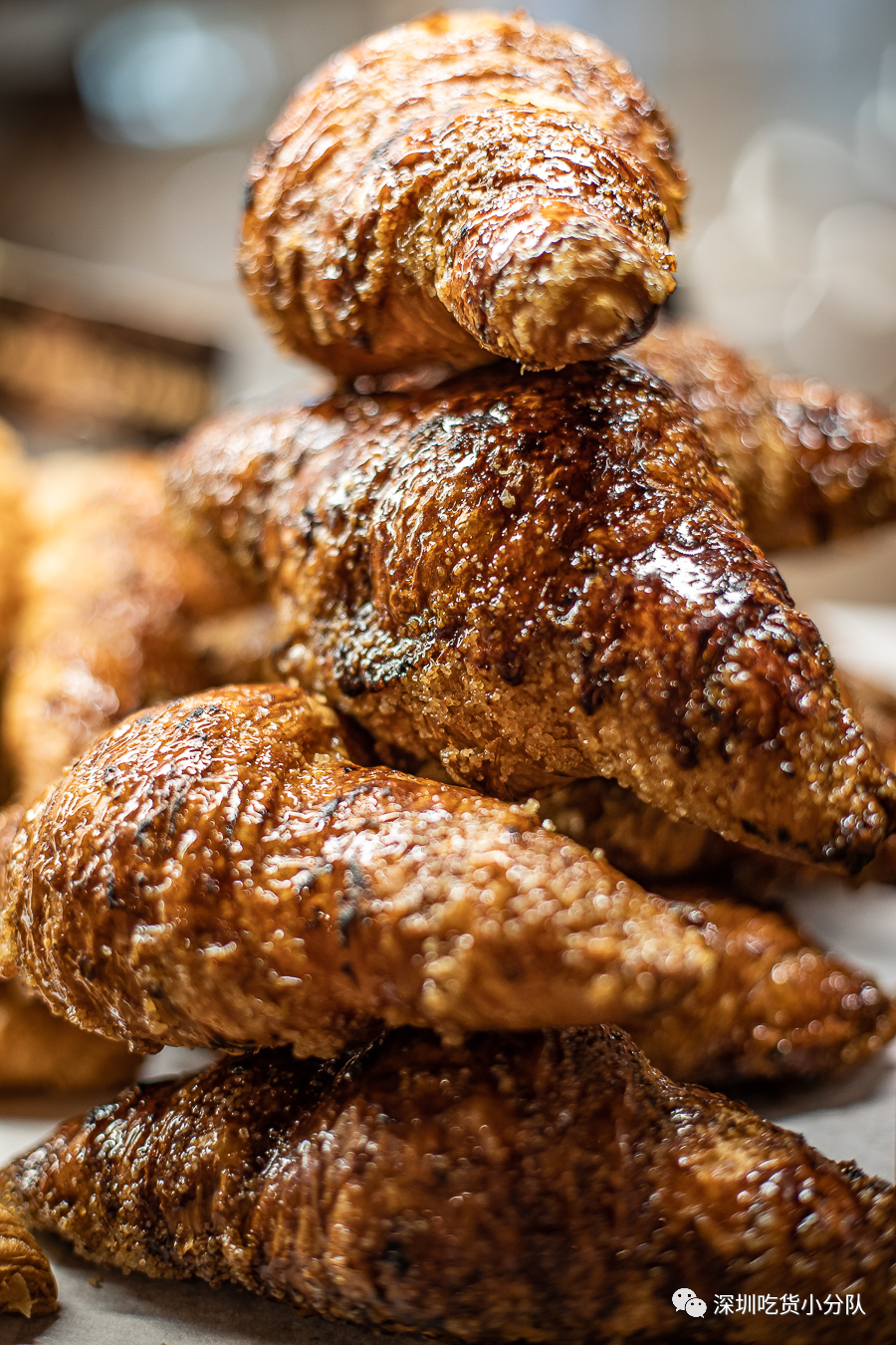 他家最给我惊喜的是可颂,大概有10+款口味,这款焦糖最多人点。表面酥脆有光泽,起酥完美,切开后气孔也均匀蓬松。