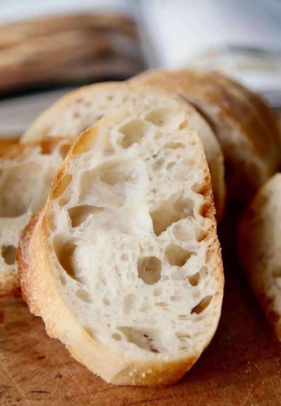 酸面包被称为“面包界的老大”,发酵使用的天然酵母,需要小心伺候,所以制作周期比较长。酸面包壳厚色深,吃起来微酸,并不是每个人都适应它的味道。吃的时候建议复烤一下,皮脆内软,麦香层次浓郁。