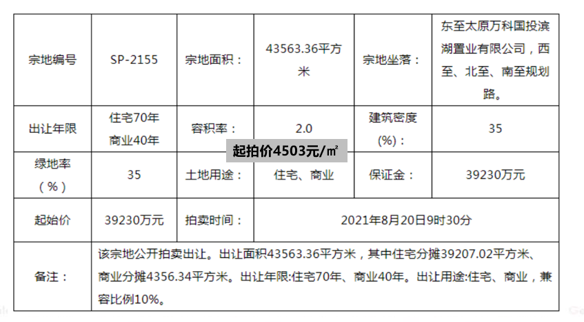 当然,上两次属于策略型招拍挂,惨遭流拍之后第三次出让方式改成了公开拍卖,但也只有太原国投1家公司报名。