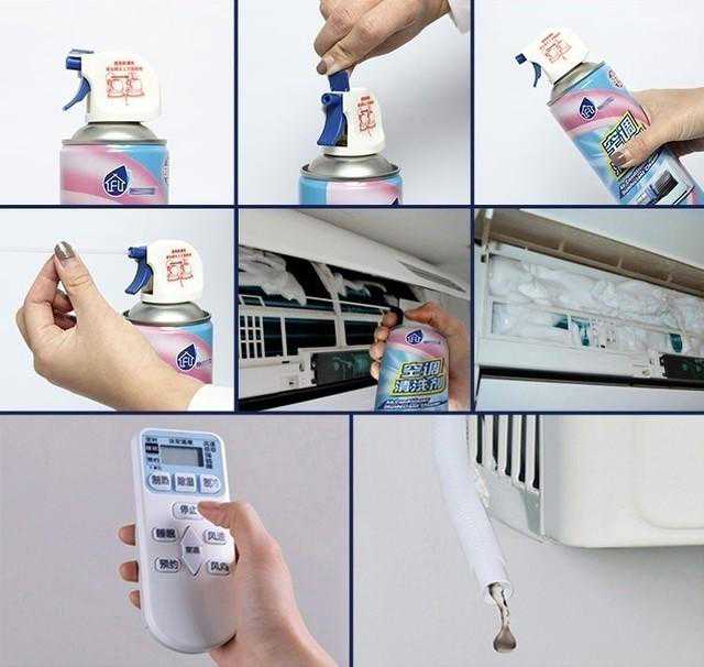 注意:不要将清洗剂喷溅到空调翅片以外的部分,尤其是内置电路板等重点部位,以免引起短路。