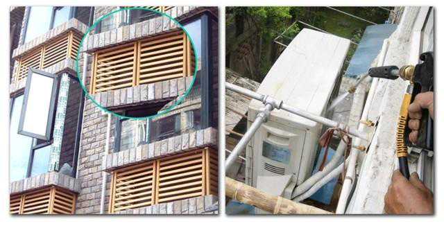 可能还有不少朋友会问,空调还有一个室外机呢!它需要进行清洁吗?笔者的建议是视情况而定!由于室外机一般安装在用户无法触及的位置,采用类似于嵌入式安装,并且基本都有空调外机栏,为空调外机的清洁工作增加不少难度,自己进行清洁会带来很大的危险性。如若室外机就在安置在地面,非常容易触及,那就可以用高压水枪直接冲洗换热器翅片即可。
