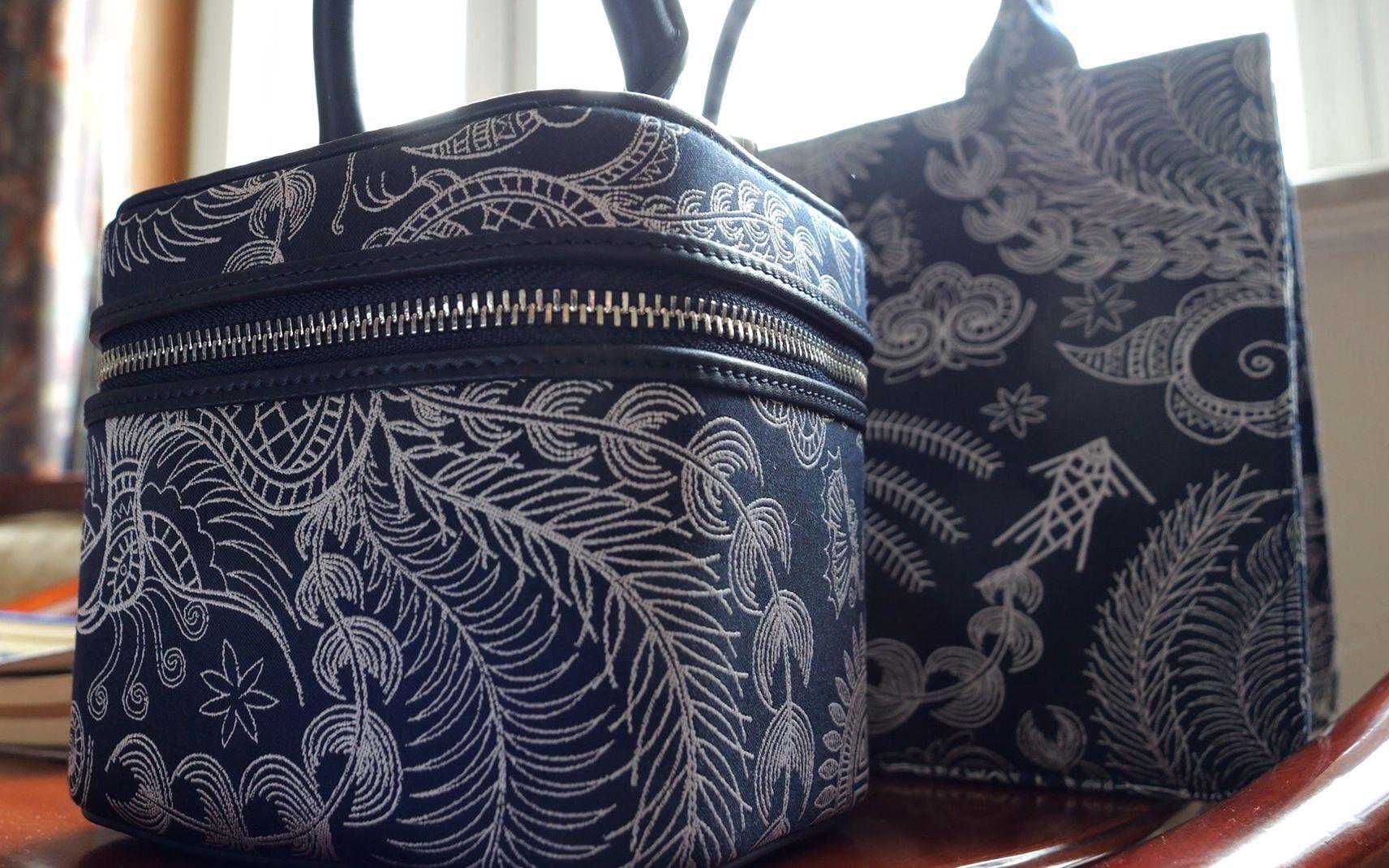 夏华:今年我带了很多绣娘们的手工艺品,像刺绣的笔记本,大本、小本都有,有手工的土布的“深山玩偶”米兔,苗绣的靠枕,民族绣样的披肩,精心准备了绣花的服装,平常开团组会的时候,我就会背上苗族纹样的托特包。