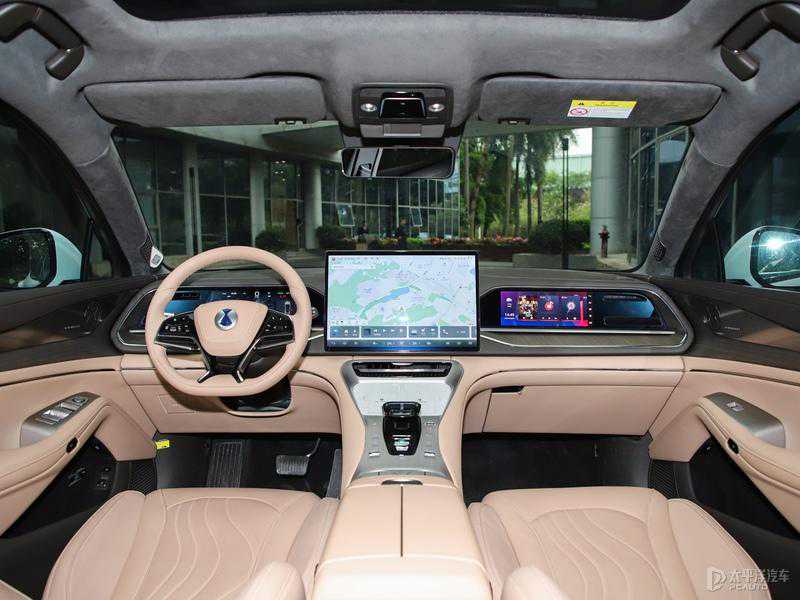 内饰方面,新款腾势N7延续了简约豪华的设计风格,配备17.3英寸中控屏、10.25英寸全液晶仪表以及10.25英寸副驾屏,同时,还配备50英寸的AR-HUD、5D云感座椅、帝瓦雷音响以及后排座椅加热、通风、按摩等功能,并新增流媒体后视镜。