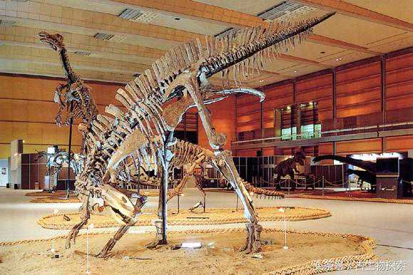图注:年代较早的满洲龙模型,被描绘成半水生的样子。不过现在的研究表明鸭嘴龙是典型陆地生活的动物,图片来着网络