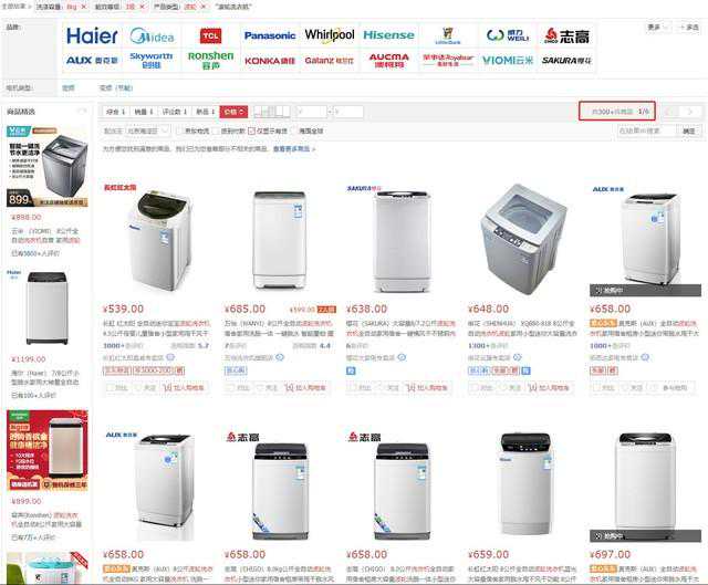2018年中国洗⾐机市场线上销量1734万台,其中线上销量最⼤的产品类型便是波轮洗⾐机,所以我们从线上销售波轮洗衣机占比最大的京东商城来做横向对比比较能说明情况,可以看到当你把标签定在“波轮”“8KG”“三级能效”的时候,出现的SKU依旧多达300+,其中售价不乏799元以下的。