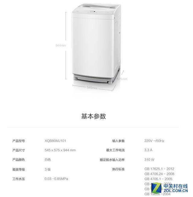 洗涤容量单纯来理解就是洗衣机能装多少衣服,目前评判这一标准的单位为KG(公斤),8KG作为时下消费者选购洗衣机的主要容量,红米选择其作为首发无可厚非,需要明确的一点是,去年发布的洗衣机新国标将引入“L”作为容量计算单位,后续逐渐替代KG;三级能效是没有什么惊喜,只能是中规中矩,“大家都这样,我也恰好有”,如此而已;10种洗涤模式,几乎也都是波轮洗衣机的标配,不过Redmi洗衣机1A加入的10档水位调节还是有一些刚需的;宽水电压设计不用过多在意,现在的波轮洗衣机几乎也都具备,不算值得一提的亮点。