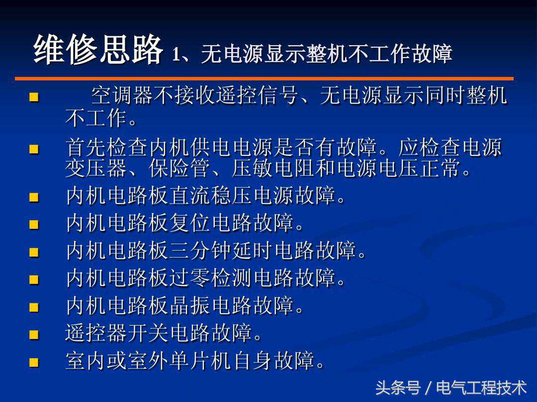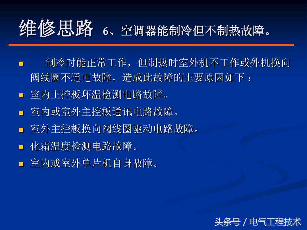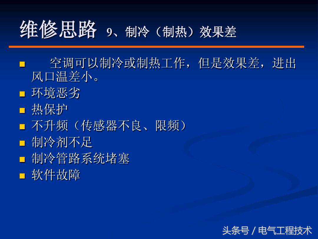 提起空调,相信几乎所有的电工师傅都很熟悉,特别是在炎热的夏天,空调几乎成了家庭的必须品,但空调在使用的过程中难免也会出现故障,当空调出现故障的时候,及时有效的处理是十分有必要的,也是空调电工师傅的基础技能,空调故障在排查的过程中除了需要具备一定的制冷知识,电路知识外,更重要的是要有自己的故障排查方法,好的方法可以让故障排查事半功倍,如果方法不对,有时候不仅无法排查故障,反而会将故障范围扩大,不利于后续的排查和维修,所以方法是很重要的,今天我们就重点来看一下空调常见的9大故障和具体的解决方法: