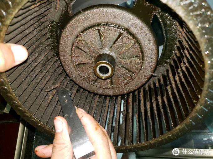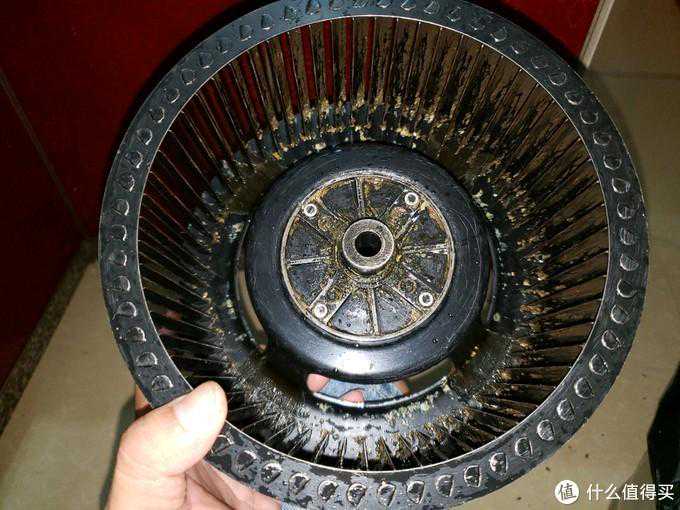 可以看到叶轮布满陈年油污。