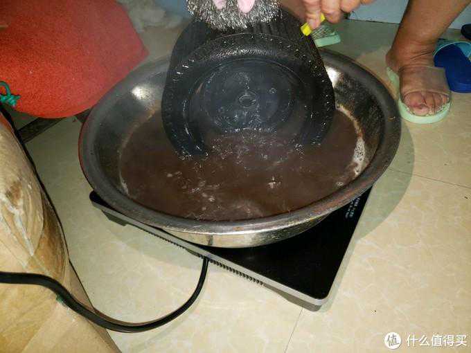 拿出电磁炉和大铁盘,水里加入大量洗洁精,配合钢丝刷慢慢盘它。