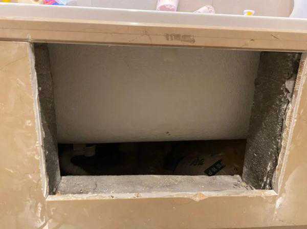 楼主说,因为角阀装在浴缸最里面,修水龙头要把洞口砸掉,口子开大才能操作。而且已经过了维保期,他只能自己找人维修。