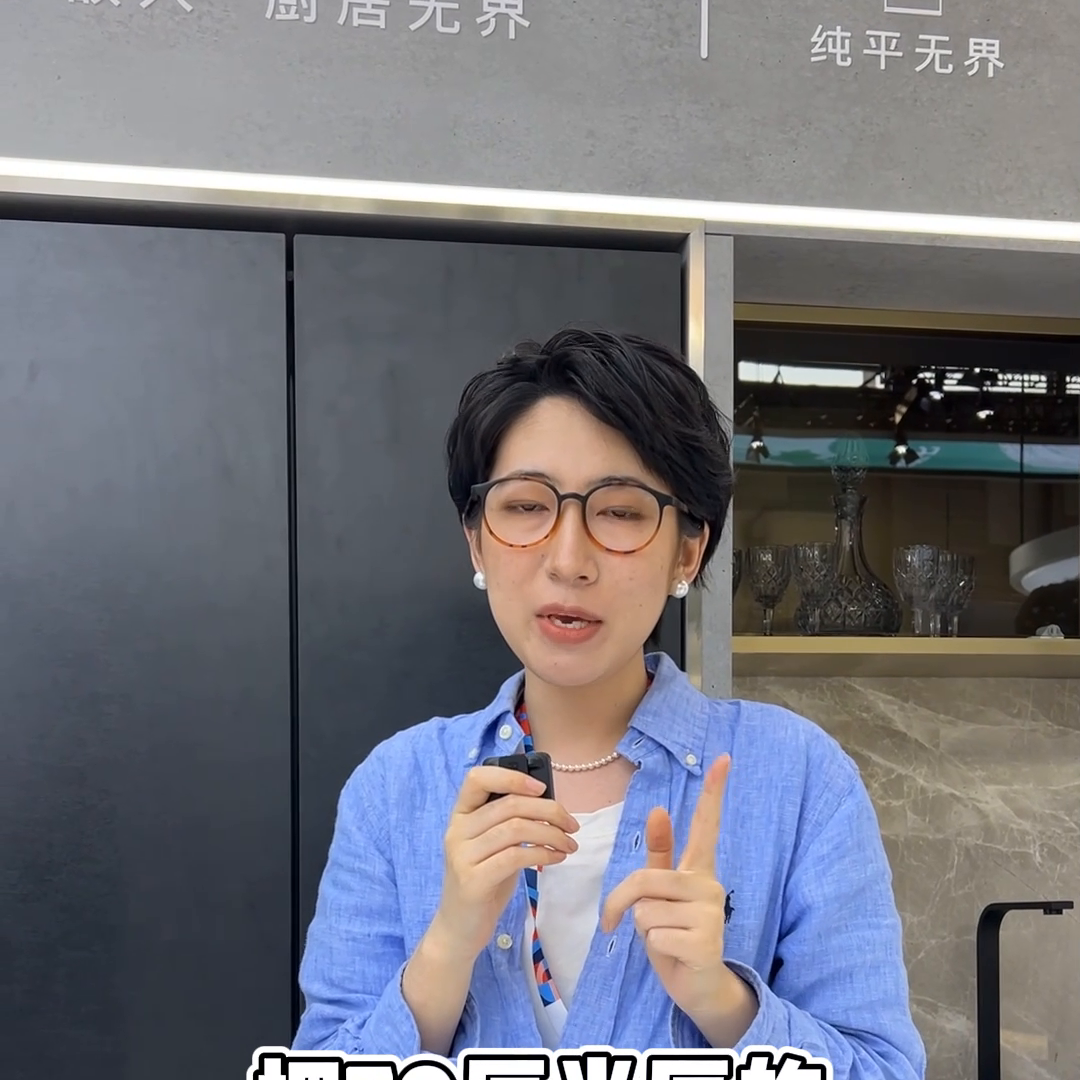 松下的零嵌铰链。无论是开门,还是抽拉抽屉,嵌入之后还能做到120度的开门角度。拿取食物的时候,冰箱面板还是天然岩板肌理材质的,配合精致内饰,引领厨居一体新风潮。