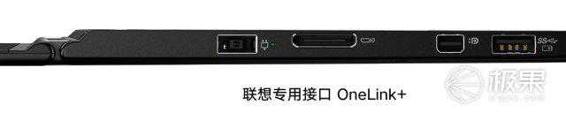 最值得吐槽的部分来了:联想升级了专用扩展接口OneLink+,这意味着用户只能购买联想独家OneLink+配件,没有第三方可选,这些配件也只能用于联想产品。前代OneLink接口和电源接口二合一,至少没有多占用机身空间。而这代「升级后」的OneLink+接口则单独拿了出来,又大又丑。你说这个地方放什么不好,USB-C或标准SD卡接口我都跑去杨元庆家放鞭炮好伐?设计师你别走啊,再让我打三百大板。