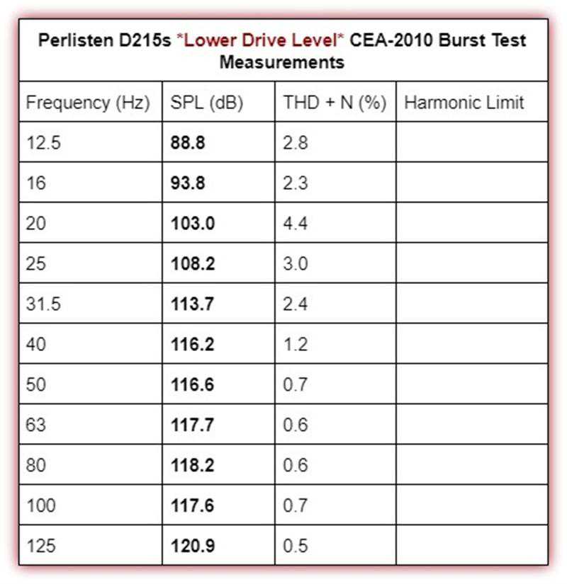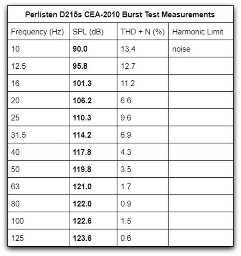 PerlistenD215s的CEA-2010数据(2m,RMS)
