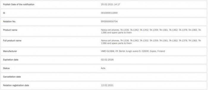 共有9款诺基亚手机变体,其中8款为新机,其零配件于2月12日注册,2月25日获得欧亚经济委员会(EEC)的认证。在这里,诺基亚手机的新型号是TA-1342、TA-1352、TA-1359、TA-1361、TA-1362、TA-1378、TA-1383和TA-1386,而在2月2日的TÜV认证中已经提到了诺基亚TA-1336。