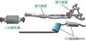 排气系统包括排气歧管、三元催化器、消声器和排气管。