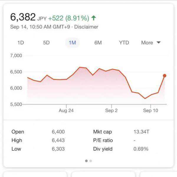进入9月以来,美股接连大跌,尤其是前期涨多了的科技股开始大跌,孙正义被曝“豪赌”美国科技股,投资者用实际行动投出了质疑票。9月7日起,软银集团股价开始下跌,几日累计跌幅超10%。不过,在今日盘前出售Arm消息被释放之后,软银股价大涨,截至发稿,涨幅近9%。