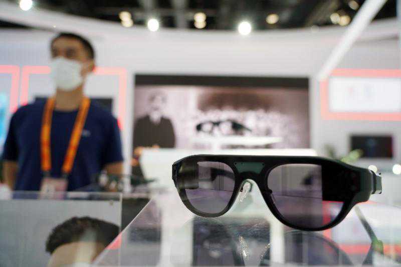 2022年9月1日,北京国家会议中心,在2022年服贸会上展出的一款AR字幕眼镜。新华社记者任超摄
