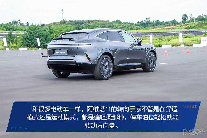 阿维塔11底盘采用前铝合金双叉臂、后五连杆独立悬架的设计,悬架系统更铝制部件的引入有效降低簧下质量,在连续变换方向的绕桩环节,凭借着良好的前后配重,车头并没有太多负担,一打方向车头就能给出响应,车头灵活性的确不错。