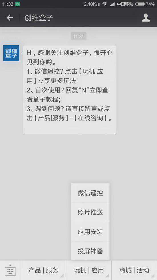 另外比较好玩的一个功能是微信扫码的互动操作,利用微信扫码后可当遥控器用,同时也能推送图片和投屏,具有一定的可玩性。