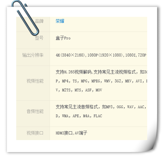 荣耀盒子Pro在外观和造型上延续了上一代产品的特点,采用与荣耀盒子voice、荣耀路由Pro统一的家族化设计语言,造型简洁圆润亲和力十足,加上下分层的设计,能更好的融入家庭客厅环境之中。而且其还专注于对画质的追求,荣耀盒子pro采用了华为新一代架构的媒体处理芯片,支持4K解码的同时其还独有专利的ImprexTM画质增强引擎,对画质提供了芯片级优化方案。