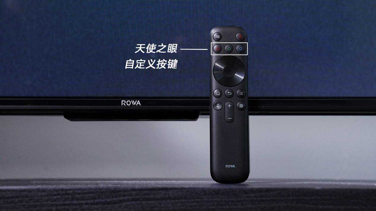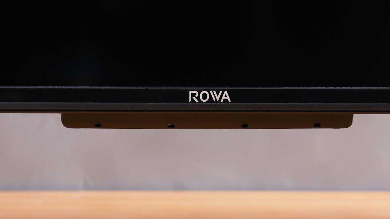 电视底边框中部有ROWA的LOGO,下方是遥控及远扬语音的传感区域。