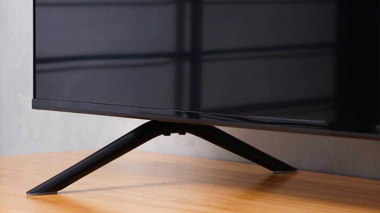 二足金属底座有很优雅简洁的造型,做工很有质感。电视含底座宽度为36.6cm。