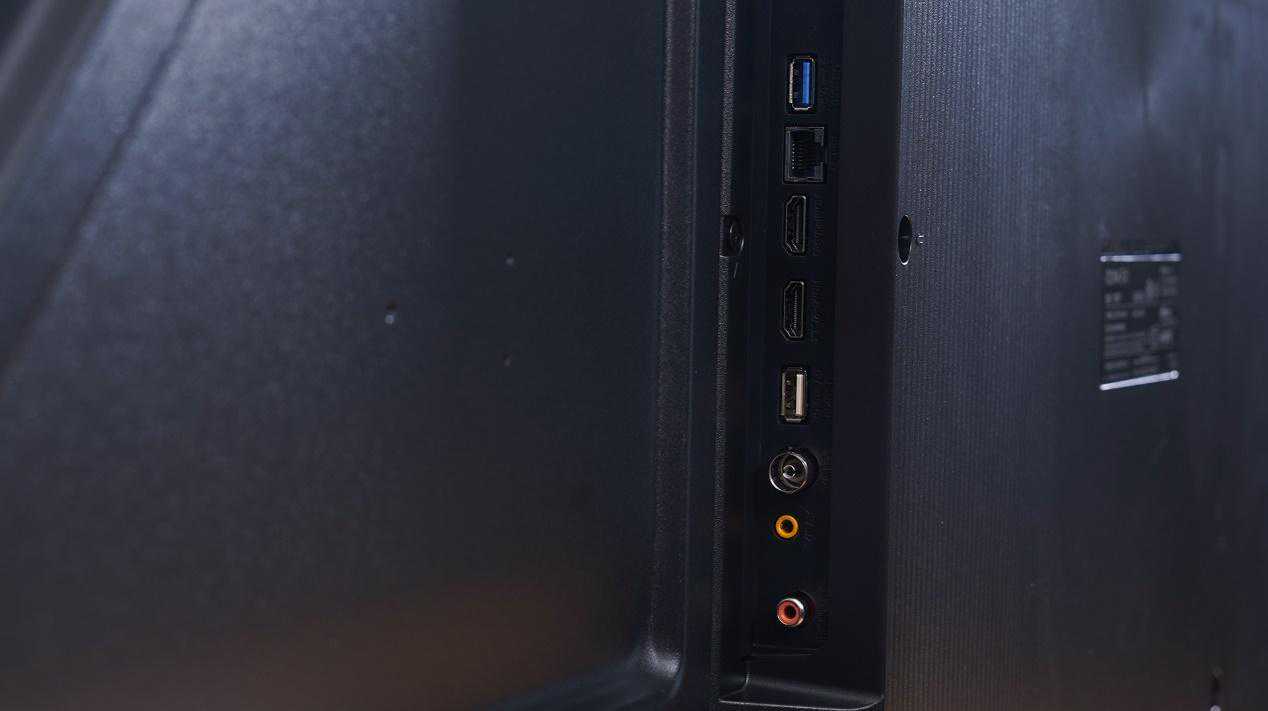接口方面配置2个HDMI接口(支持传输),靠近RJ45网口的HDMI极口支持ARC同步;两个USB接口,可以接驳U盘、移动硬盘等外接存储设备播放媒体文件,K歌时也需要接上麦克风的接收器,另外还有射频接口、音频接口和同轴接口各一个。这台电视也支持蓝牙5.2连接和2.4G/5G双频WiFi连接。