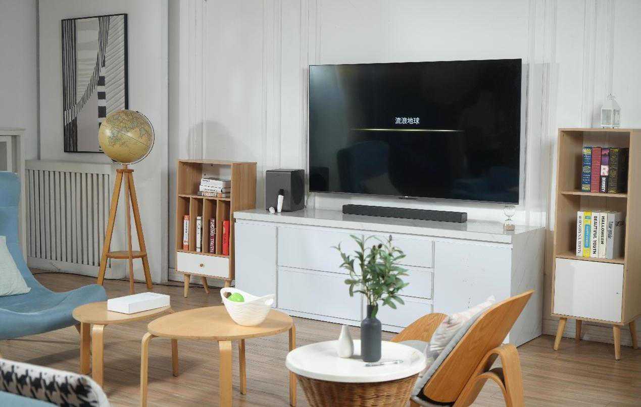像这样这“1条形音箱+1低音炮”的音响搭配,紧凑简洁,完全可以作为一件艺术家居摆设融入客厅场景。