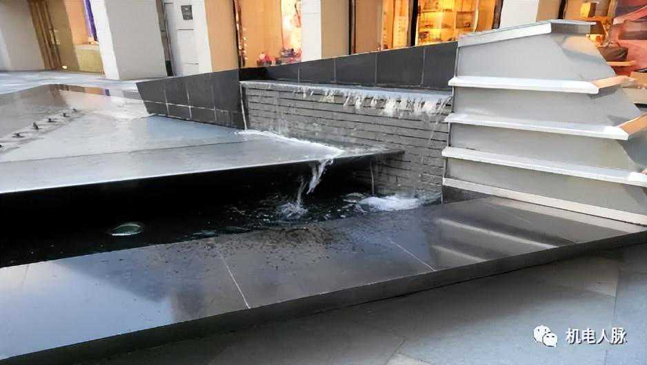 措施:在伸缩缝处做不锈钢接水槽,将水源引至旁边集水井,由水泵抽水排出室外。