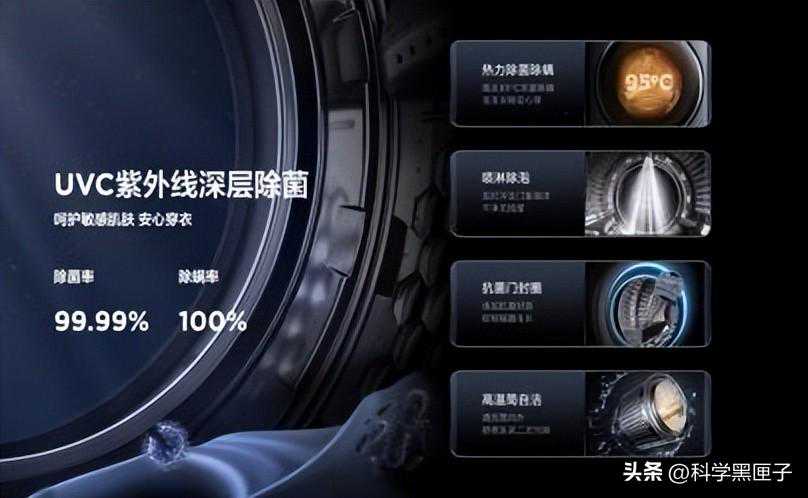 还支持UVC紫外线除菌,除菌功能不罕见,但相较于普通洗衣机除菌前还要加热,TCLQ10冷水洗涤也能直接除菌,节能且方便,重点是除菌率99.99%、除螨率100%,这让人很安心。