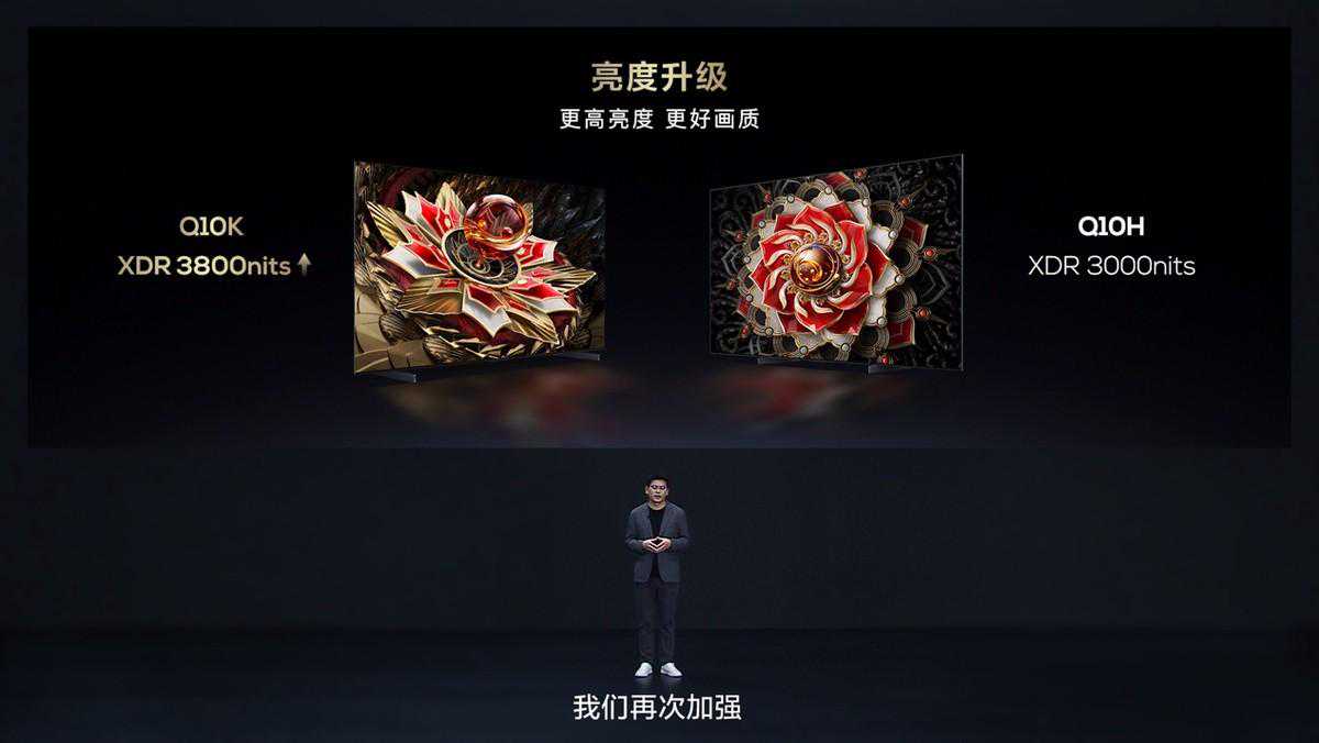 在亮度方面,Q10K的升级更加明显。原本上一代产品Q10H的XDR3000nits亮度,已经远超只有2000nits的同价位段行业平均水平,而本次Q10K再次扩大领先优势,98/85/75三个尺寸亮度均提升至XDR3800nits,65英寸电视的亮度也提升至XDR3500nits,同时,Q10H的动态对比度高达3800万比1,层次更分明,细节更清晰。