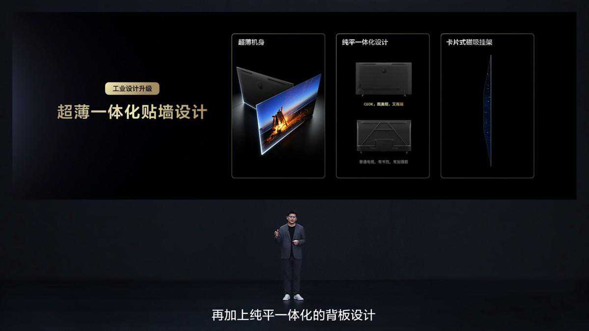 科技向美而生,旗舰产品不仅音画要旗舰,工业设计一样也要符合它的旗舰气质,在外观方面,Q10K也是妥妥的旗舰级别。得易于微距OD的设计,Q10K的机身厚度仅为普通电视的一半,而且背部纯平一体,可以无缝隙贴墙,能完美融入家居环境。此外,Q10K整个背部铺满了MiniLED星空纹理,搭配引力星环重低音设计,光线流转之间,宛若进入万象星河的璀璨星空,看着美感十足,质感爆棚。