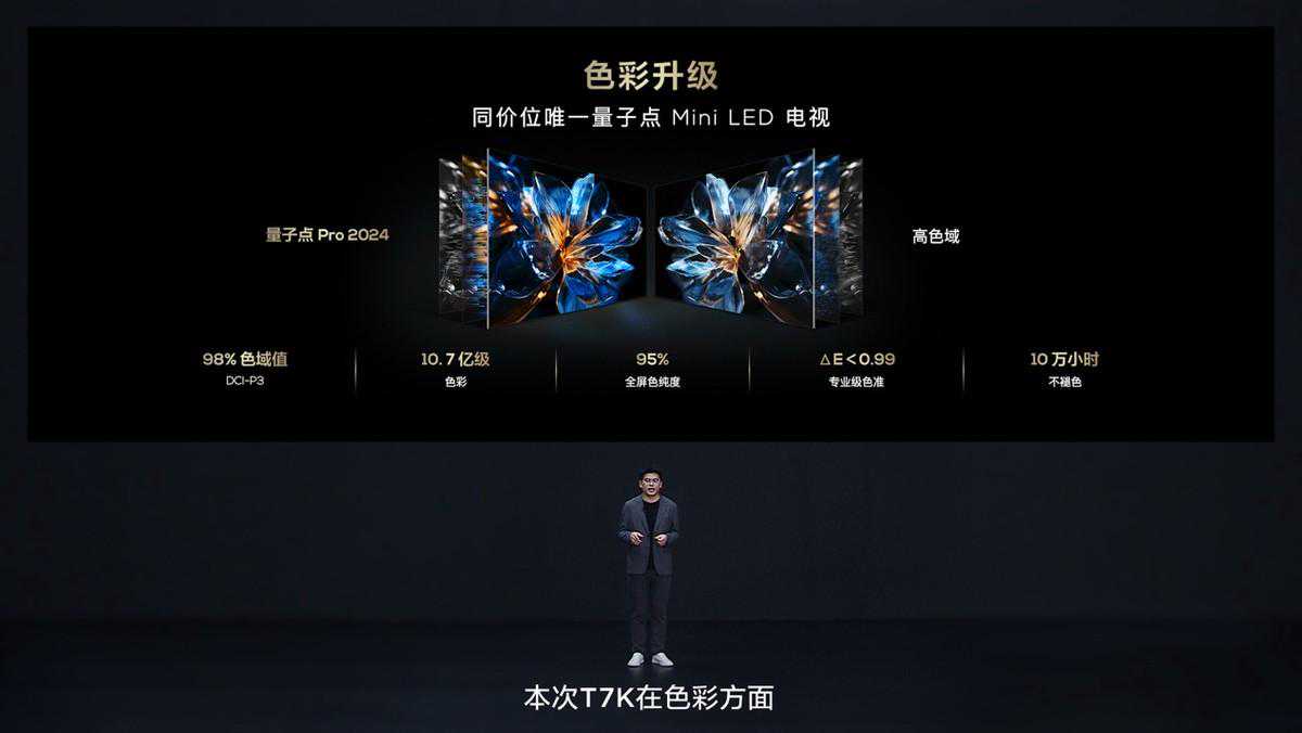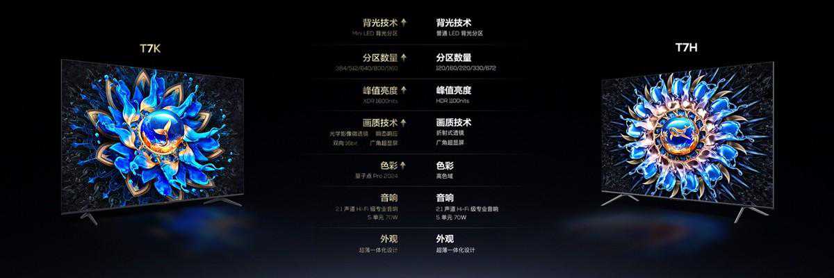 相比于T7H,T7K实现了从传统LED电视越阶成MiniLED电视,并在五大方面得到升级。