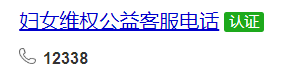 第五个,12338,妇女维权公益服务热线,主要为妇女儿童提供法律、婚姻、家庭、心理、教育等方面的咨询,并受理有关妇女儿童侵权案件的投诉。当妇女家庭出现问题、遭受不平等对待、受到性别歧视时,可直接拨打这个电话,广大女性朋友要记牢!