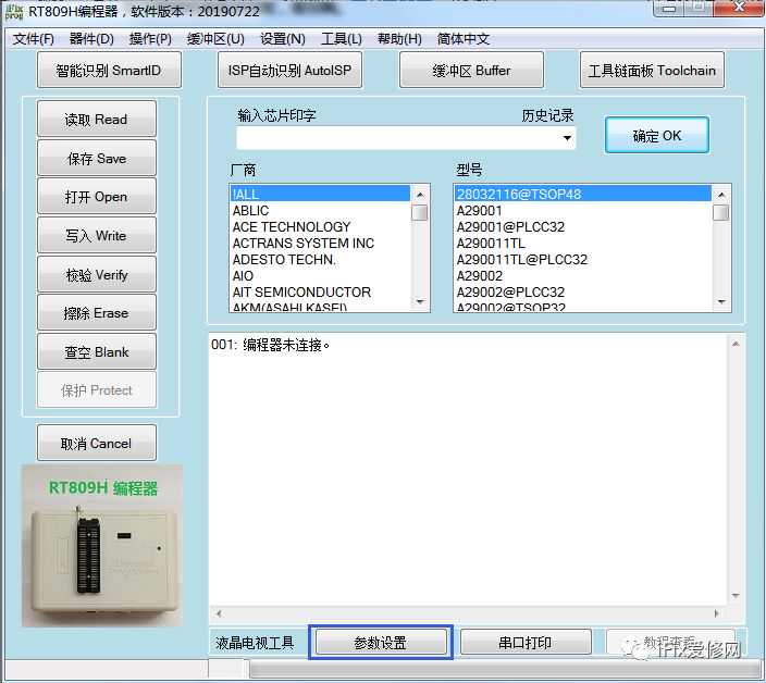 转接线用于连接RT809系列编程器与待测/修主板的相关接口,完成查看串口打印信息及命令操作、在线读写程序(普通电视、非网络电视)、读写引导程序(网络电视)等功能。现在先了解一下RT809F/H编程器V......