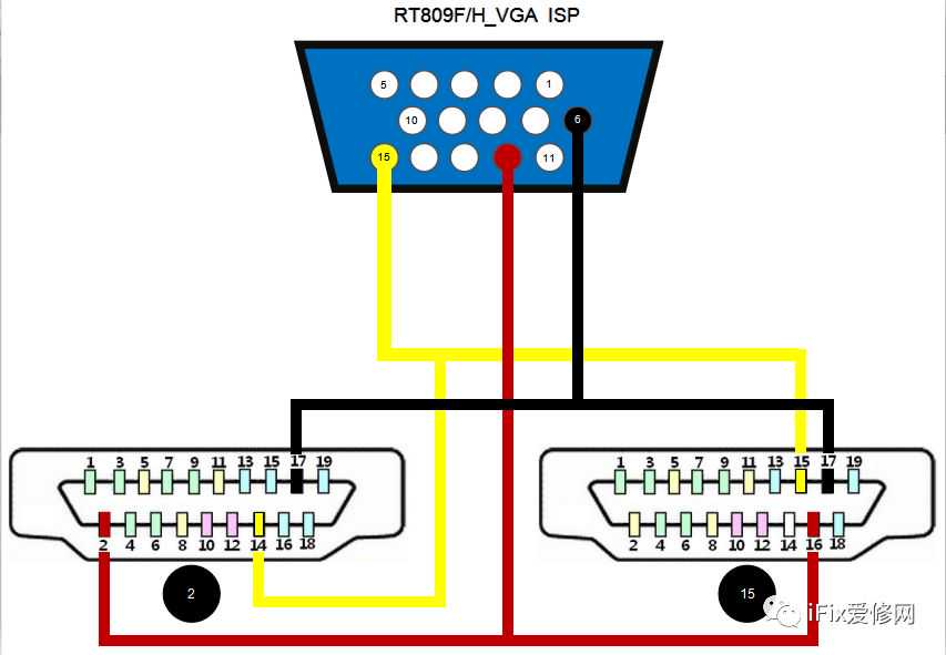 VGA线转HDMIA型线,分线标2和15: