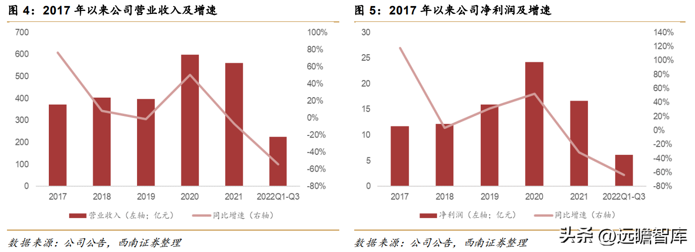 根据上述假设,我们测算出公司2022-2024年营业收入分别为301.6亿元、391.4亿元和507.7亿元,同比增速分别为-46.2%/29.8%/29.7%,归母净利润分别为5.4亿元、10.9亿元和16.5亿元,同比增速分别为-48.0%/101.3%/52.4%。