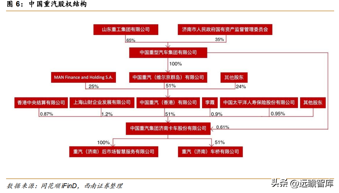 公司第一大股东中国重汽(香港)有限公司持股51%,股权集中度高,公司经营管理稳定性强;中国重汽(香港)有限公司第一大股东为中国重汽(维尔京群岛)有限公司,第二大股东为德国曼公司,通过外资助力长远发展与合作;