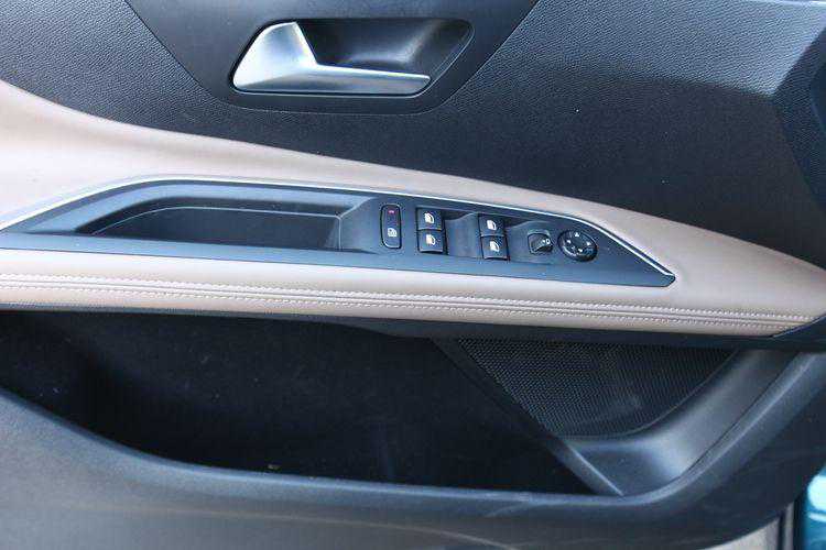 车门内饰板上的手扶部分,采用皮质包裹,缝线处理相当精细,按键的手感也挺不错。下方储物槽的容积较大,很实用。