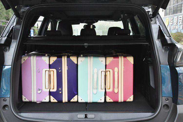 根据厂家数据,行李厢容积771升,这是个相当大的数字,毕竟,即使奥迪A6L那样的中大型轿车,行李厢容积也不过430升。如果您觉得771升这个数字太抽象,那么,请看下图——把4个24英寸行李箱放进去,上部距遮挡帘大概还有130毫米的空余,宽度也还有200毫米的剩余。根据估算,它至少能容纳7个24英寸行李箱。空间之大,由此可见。