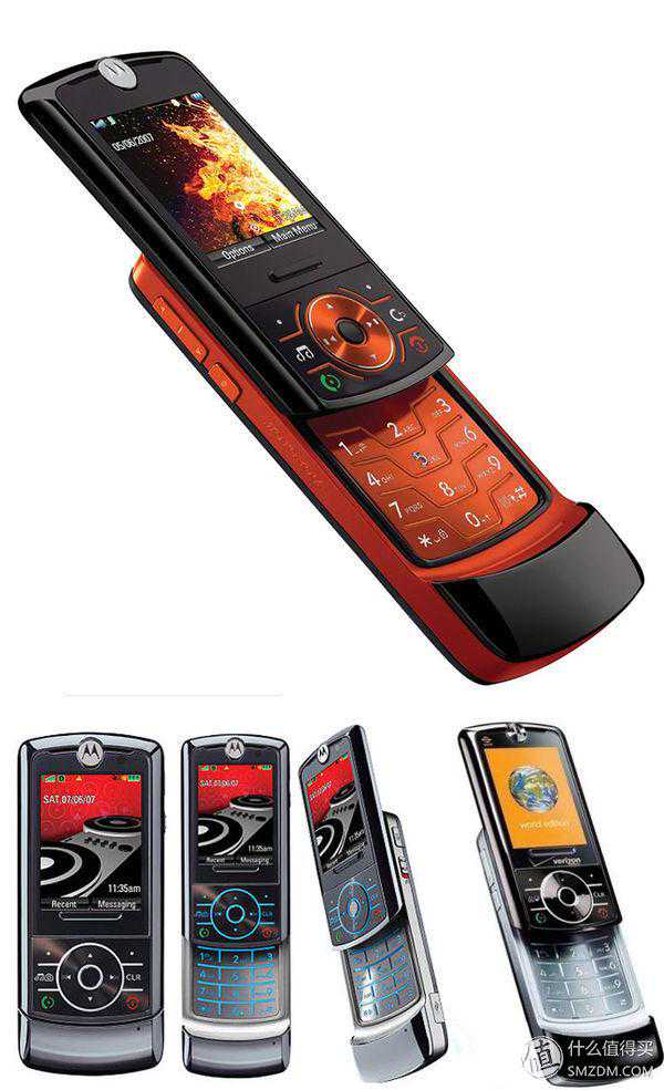 ▼应该是摩托罗拉首部透明翻盖手机,听筒还集成在翻盖上,还多种翻盖颜色选择。