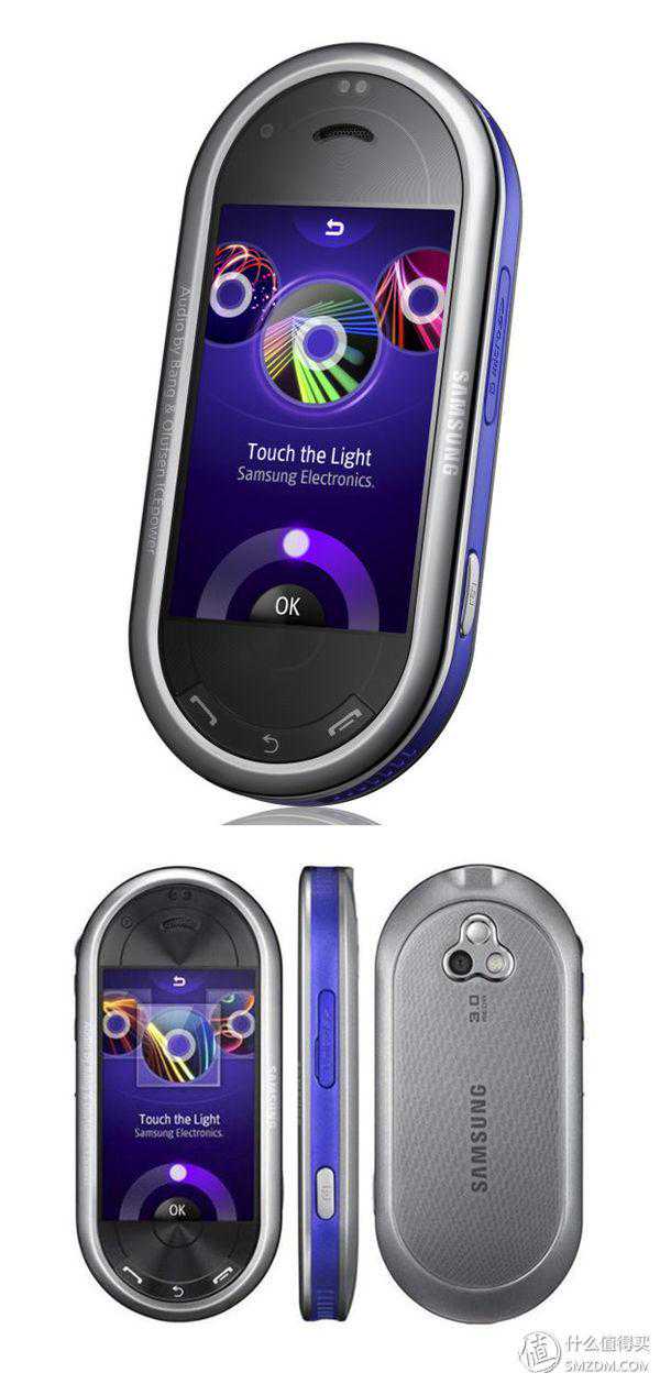 ▼也是一款音乐手机,设计很圆润,与飞利浦的355还有点相似。采了紫色中框,三星十分少用的颜色,明显脱离三星风格。