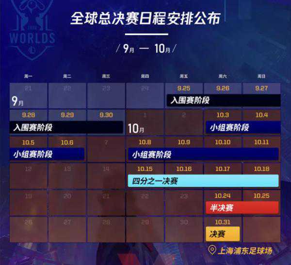 所有赛区的顶级队伍将会齐聚一堂,为了全球总决赛的冠军头衔以及举起召唤师杯的资格一争高下。每年大赛的主办地区均有所不同。今年,各个队伍将会齐聚中国上海。
