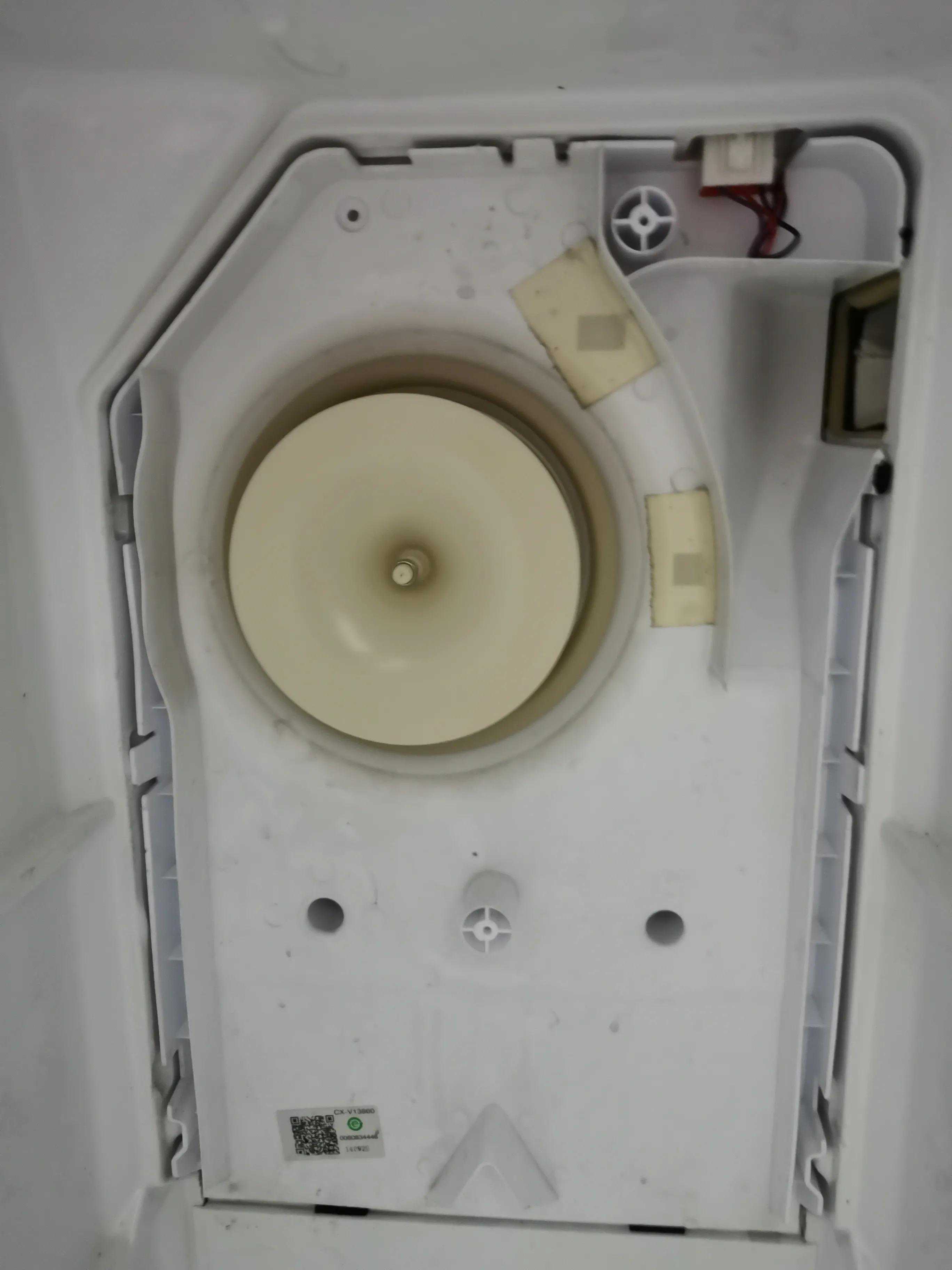 还是无奈放弃拉[钱][钱][钱][钱](你懂得)算了……还是自己检修一下吧!打开冷冻室,上半部分有两个螺丝,拆下来后拿下风机挡板就能看到风机了。