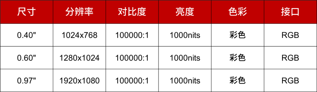 注:文中MicroOLED产品表格信息皆来自各家厂商官方网站,最新产品请以各厂商最新实际情况为准。