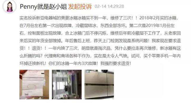 在聚投诉,有消费者吐槽美菱雅典娜四开门冰箱变温室无法正常使用。这款冰箱所宣传的微冻功能,也形同虚设。甚至经过多次维修,仍无法正常使用。