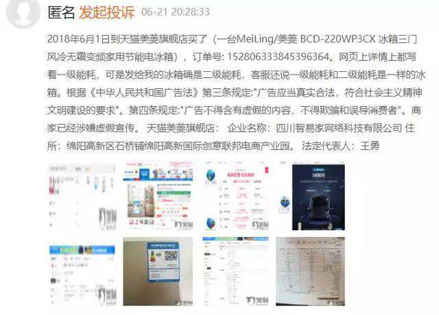最后,在宣传方面,美菱冰箱出现宣传能耗与实际产品不符的问题。有消费者吐槽,在天猫美菱旗舰店购买的冰箱,网页详情上标注着一级能耗,但到货的冰箱却是二级能耗。这位消费者认为,美菱冰箱涉嫌虚假宣传。