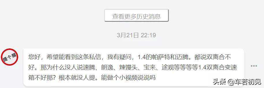 其次再来说说,为什么都是1.4T匹配7速双离合的总成,迈腾、帕萨特就经常被吐槽,而速腾、朗逸就没有吸引来这么大的火力。这其实就是消费心理的事儿了,大部分人会觉得“这套总成要是放在A级车上还凑合,但如果放在20多万的B级车上就有些敷衍了。”